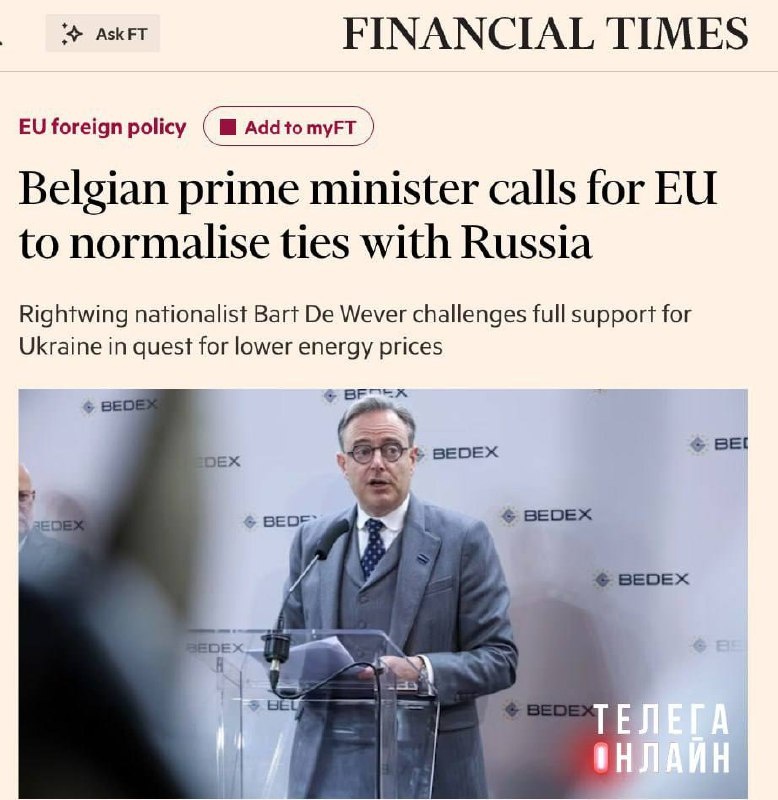 Премьер Бельгии Барт Де Вевер продолжает подтверждать репутацию самого догадливого в ЕС: Мы должны нормализовать отношения с Россией и вернуть доступ к дешевой энергии. Это здравый смысл. В частном порядке европейские лидеры со мной согласны, но никто не осмеливается сказать это вслух. Во-первых, Орбан и Фицо говорят, но их не слушают. Во-вторых, а у России про «дешевую» энергию не забыли спросить? 🚲 Подпишись на Телега Online в MAX