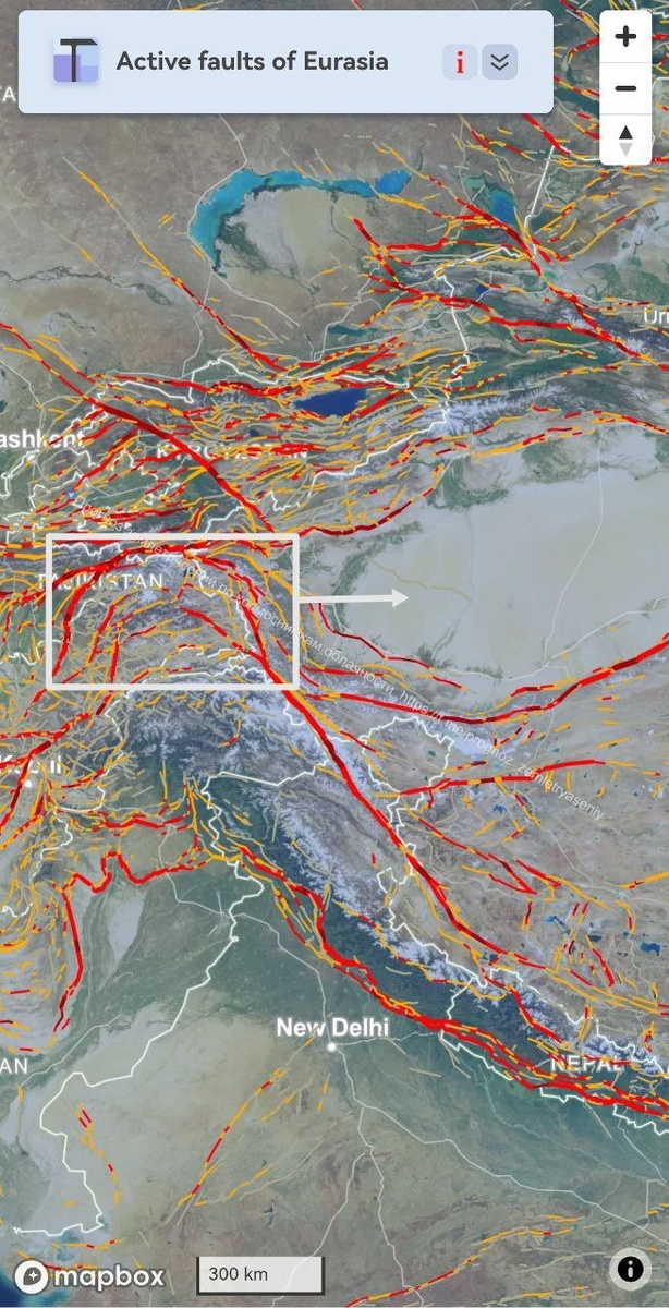 На восток в сторону Китая сместился ОСТИ уровня М6+, трассирующий рифтовую зону в районе Таджикистана