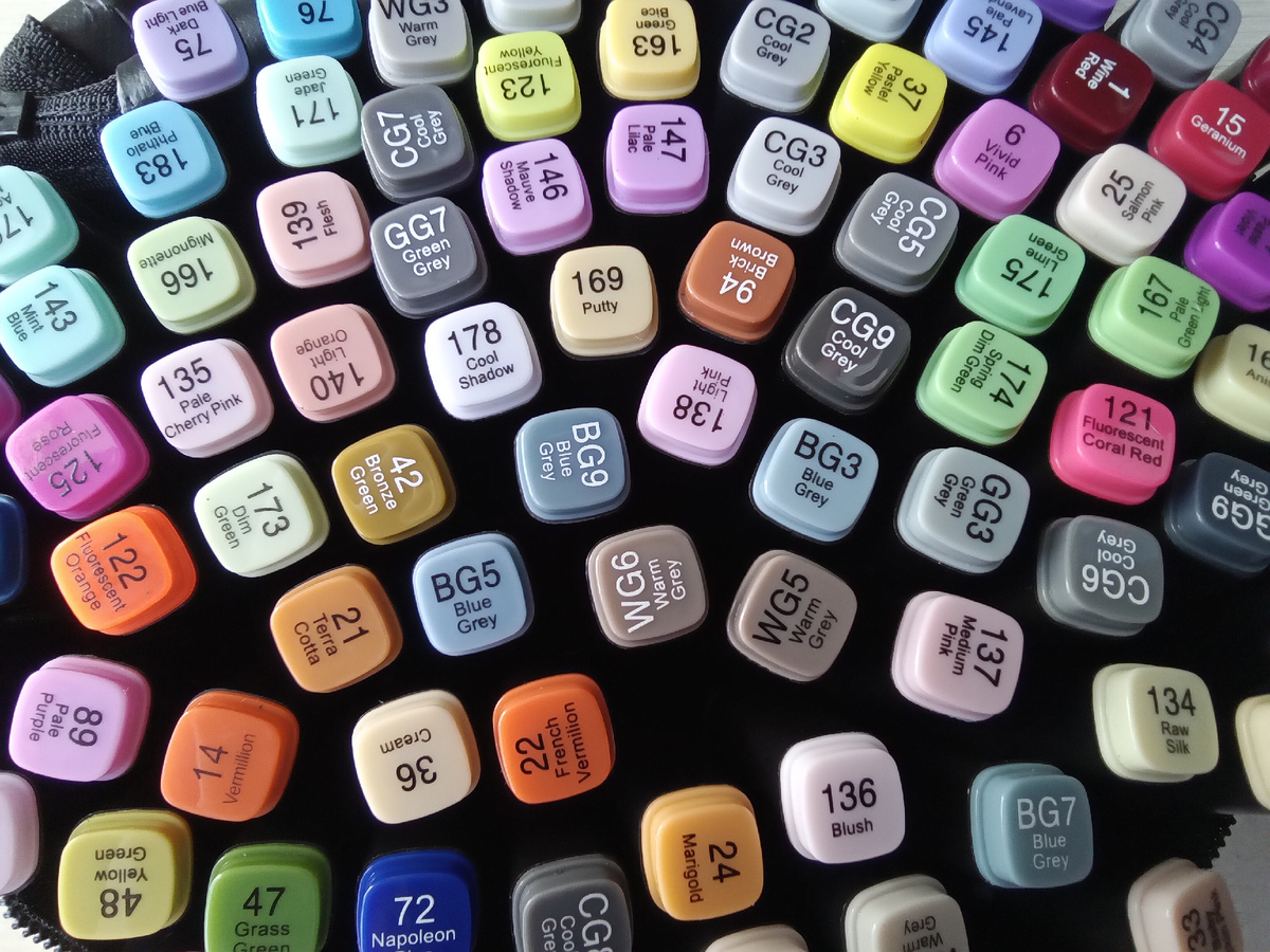 Итак, набор спиртовых маркеров. Решила взять 100 цветов. Долго не выбирала, взяла первый попавшийся на глаза недорогой набор. Для раскрасочных дел пойдёт.