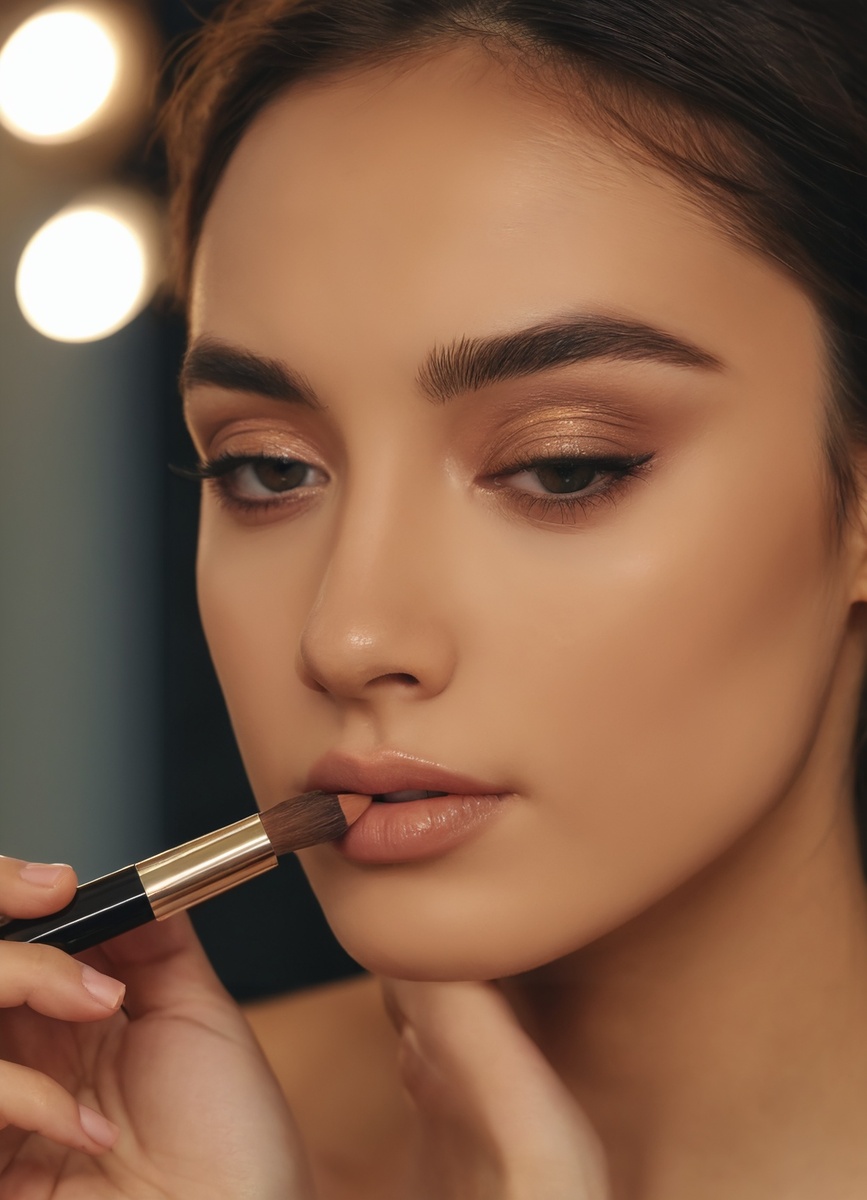 Перед нанесением помады используйте карандаш для губ того же оттенка, чтобы создать четкий контур и предотвратить растекание. Для вечернего выхода выберите стойкие формулы, которые хорошо держатся и не сушат губы. Завершите образ легким блеском - это добавит свежести и сделает губы более выразительными. Так вы создадите гармоничный и стильный нюдовый образ, который будет радовать весь вечер.