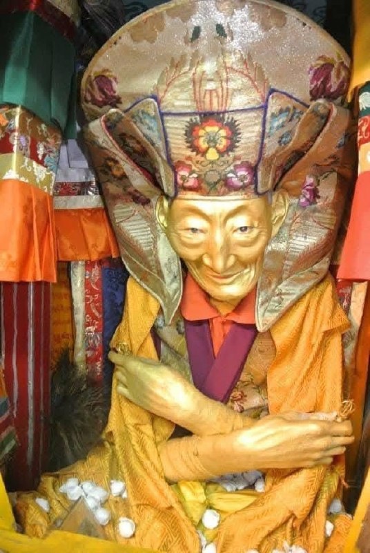В тибетском буддизме это называют тукдам — состояние, когда сознание мастера остаётся в теле после физической смерти, погружённое в глубокую медитацию. В 1989 году мир узнал о чуде, связанном с именем ламы Калу Ринпоче. После его ухода тело четыре дня пребывало в тукдаме. Ни намёка на разложение, словно Ринпоче просто уснул в объятиях медитации. Два года спустя, в 1991 м, тело ламы мумифицировали и покрыли золотом. Теперь оно покоится в ступе монастыря в Дарджилинге не как прах, а как живой символ просветления. Золото здесь не роскошь, а метафора: оно отражает сияние ума, победившего иллюзии. Хотя документальных свидетельств немного, в буддийской традиции упоминаются и другие великие мастера, ушедшие в этом особом состоянии: • Лама Итигэлов (1852–1927) — бурятский учитель, чьё тело после смерти осталось нетленным. В 2002 году его эксгумировали: кожа сохранила эластичность, суставы двигались. Сегодня его тело находится в Иволгинском дацане (Бурятия) и считается святыней. • Кармапа XV