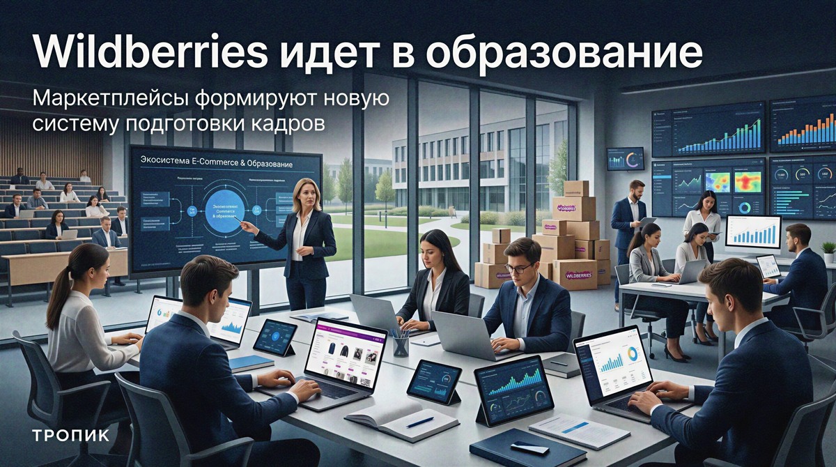 Маркетплейсы в России окончательно выходят за рамки просто торговых площадок. Запуск магистратуры Wildberries в РУДН показывает, что рынок начинает формировать собственную систему подготовки кадров — не на уровне курсов и вебинаров, а уже через полноценное высшее образование. Татьяна Ким запускает в РУДН новую двухлетнюю магистерскую программу Wildberries. Ее задача — с нуля обучать студентов управлению бизнесом на маркетплейсах. В программе заявлены как теоретическая часть, так и практическая работа непосредственно на площадке. По сути, речь идет не просто об образовательном проекте, а о попытке встроить маркетплейс-модель в академическую среду и начать готовить специалистов под конкретные задачи цифровой торговли. До сих пор рынок маркетплейсов в основном рос за счет практиков. Люди заходили в нишу через собственный опыт, ошибки, курсы, агентства, внутренние команды и разрозненные инструкции. Теперь один из крупнейших игроков фактически заявляет: управление продажами на маркетплейсах