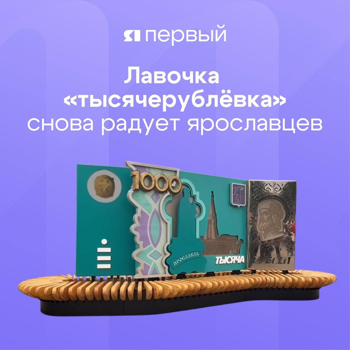 🎉 Арт-объект на Богоявленской площади вернулся на своё место после ремонта Повреждённую деталь восстановили на производстве, а саму конструкцию дополнительно оборудовали вечерней подсветкой. «Ремонт скамьи, который выполнялся на производстве, успешно завершен, пострадавшая деталь восстановлена. Скамья в порядке, на своем привычном месте и готова к началу туристического сезона», – рассказала пресс-секретарь ярославского филиала Фора-Банка Светлана Михеева. Напомним, необычную скамью установили в августе прошлого года в память о тысячной купюре старого образца с видами Ярославля. 💚 Мы в МАХ