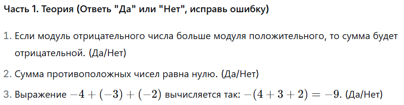 М6 ДЗ Сложение отрицательных чисел, сложение чисел с разными знаками