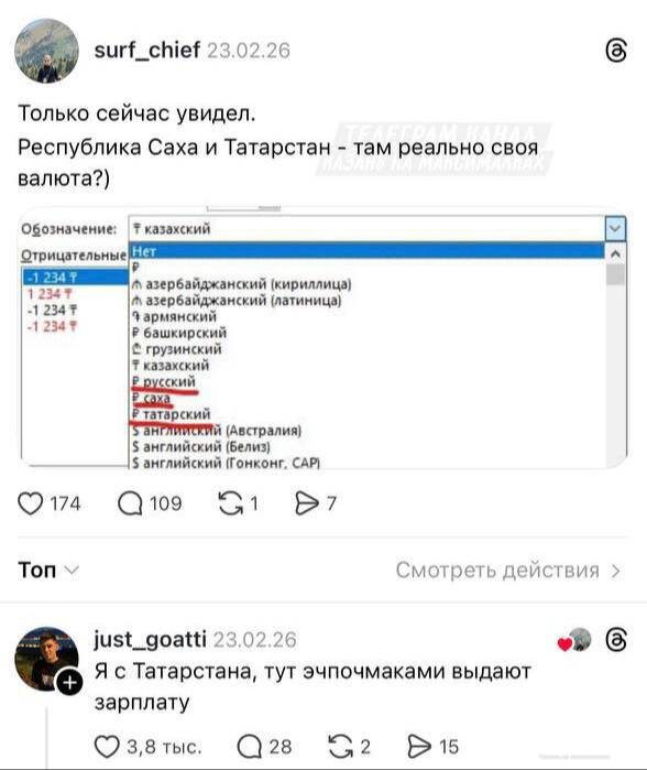 ? В сети активно интересуются, есть ли в нашей республике своя валюта, а именно реальна ли оплата эчпочмаками. 😂 📲 Читайте нас в MAX 😊 Подписаться | Прислать новость