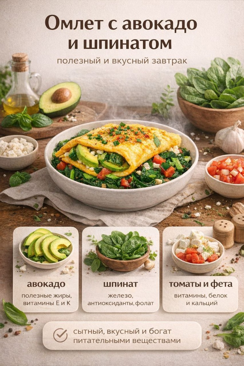 ) Если ваша цель - ясный мозг и стабильный уровень энергии до самого обеда, забудьте про каши и хлопья. 🛠 Инструментарий (на 1 порцию): 2 яйца (источник холина (витамин В4) - строительного материала для нейромедиатора внимания ацетилхолина). 1/2 спелого авокадо (мононенасыщенные жиры для здоровья мембран нейронов). 1 ст. л. оливкового масла Extra Virgin (полифенолы для защиты сосудов). Морская соль + дробленый черный перец. Опционально: Горсть шпината или рукколы (нитраты для микроциркуляции). 🧬 Биохимическая сборка: Термическая обработка. Жарим яйца на среднем огне. Важно! Оставьте желток жидким. Так мы сохраняем лецитин и витамины группы B в биодоступной форме. Пережаренный сухой желток - это потеря 50% когнитивной пользы. Жировой стек. Авокадо нарезаем слайсами. Если оно твердое, то вы не получите нужной текстуры и жиров. Сбрызните лимоном. Витамин С здесь нужен не только для вкуса, но и для того, чтобы антиоксиданты из авокадо не окислились на воздухе. Клетчатка: Если до