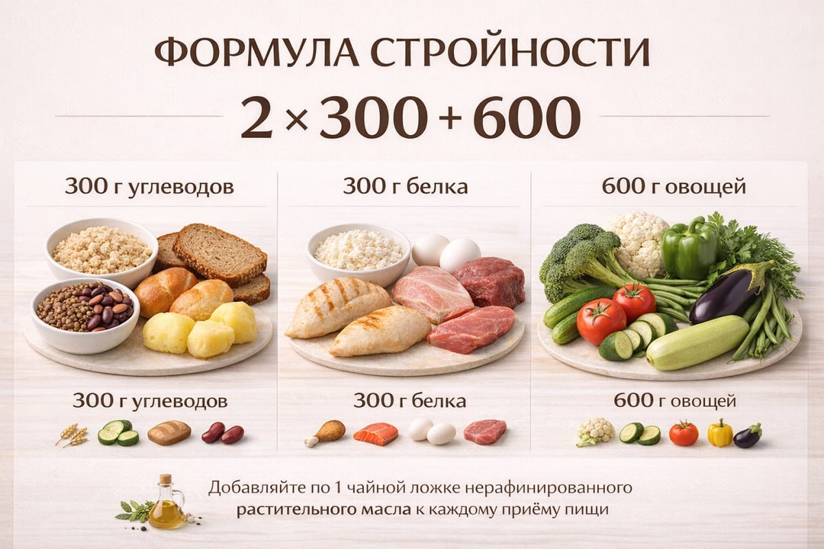 чтобы вам не пришлось ловить фото в видео, даю вам общую СХЕМУ: каких и сколько продуктов нужно съедать за день.