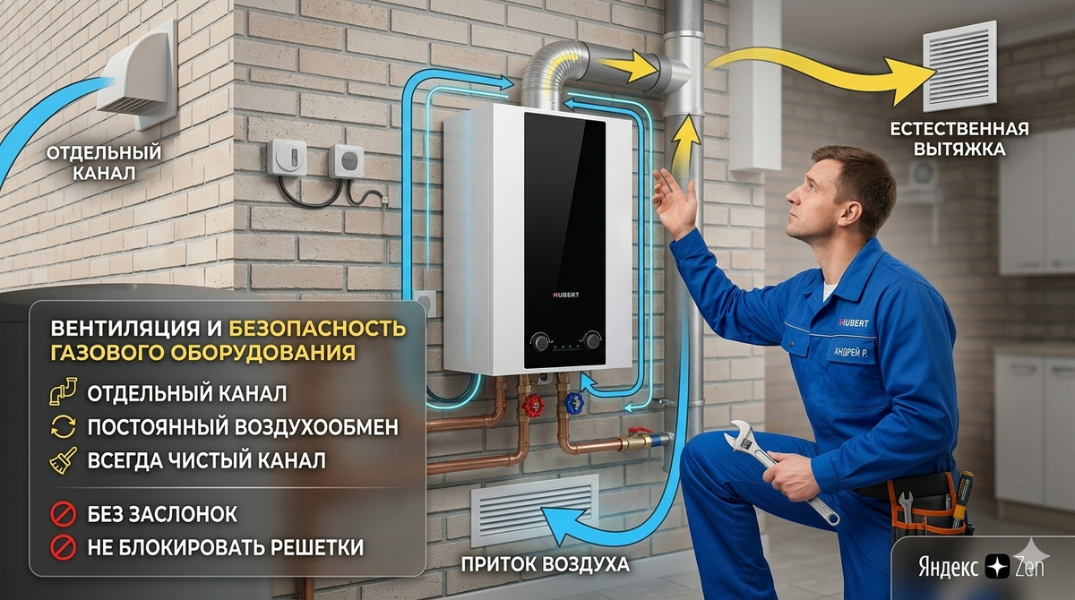 Многие владельцы домов и квартир с газовым отоплением совершают опасную ошибку: они думают, что кухонной вытяжки над плитой вполне достаточно. На самом деле это не так. Если у вас установлен котел HUBERT, колонка или газовая плита, вам нужна полноценная система вытяжной вентиляции. Разбираемся, как она должна работать и какие ошибки могут стать фатальными. Газовое оборудование в процессе работы выделяет продукты сгорания, влагу и пары. Все это должно беспрепятственно удаляться из дома. Но есть и еще три причины: Чтобы вентиляция реально работала, а не просто числилась на бумаге, соблюдайте эти нормы: Эти действия нарушают работу системы и ставят вашу жизнь под угрозу: Исправная вентиляция - это не просто каприз газовой службы, а гарантия вашей безопасности. Проверьте свои вентканалы сегодня: просто поднесите лист бумаги к решетке. Если он не «прилипает», значит, система требует внимания. А когда вы в последний раз проверяли тягу в своем доме? Поделитесь в комментариях, как организована