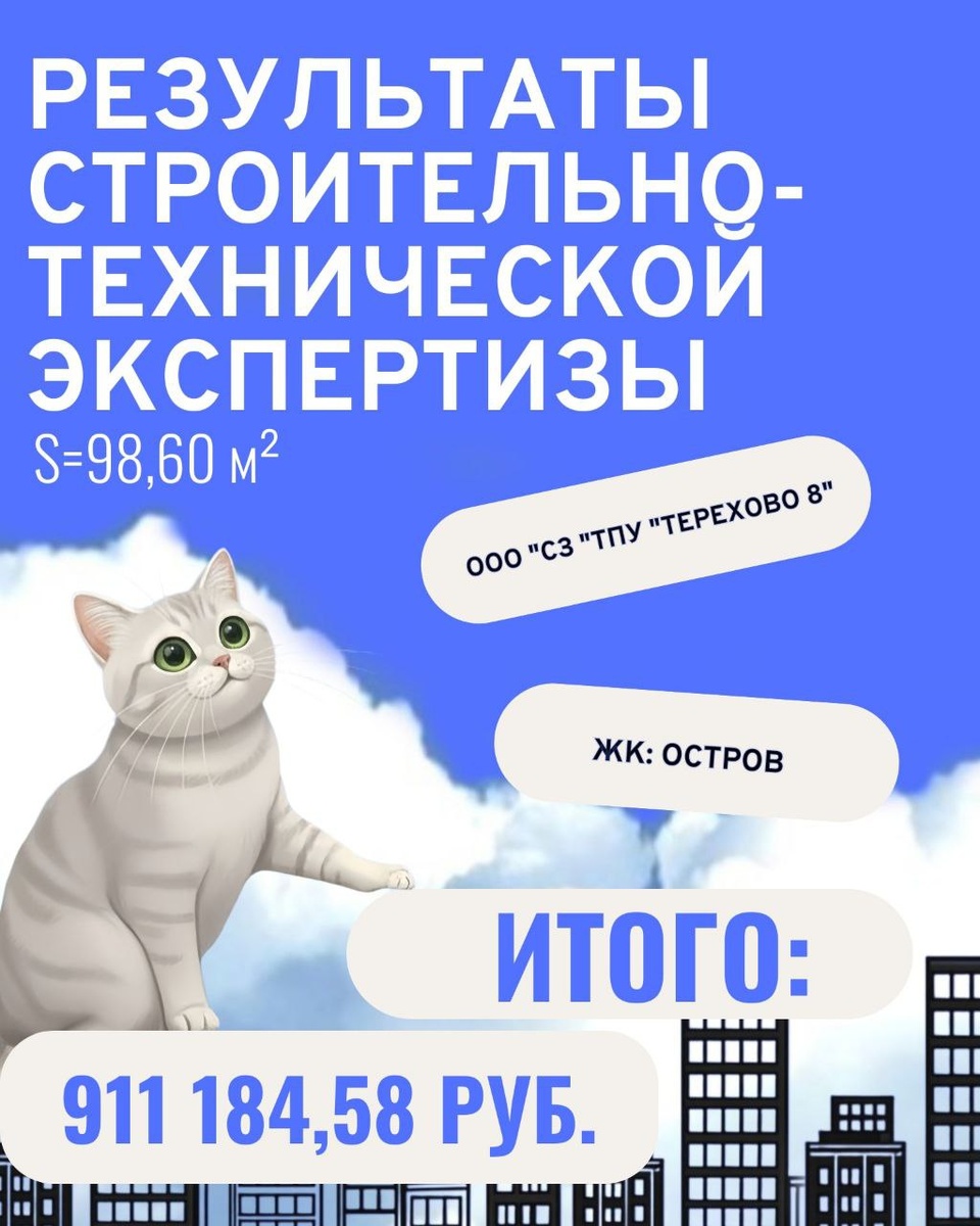 🆗 ➿➿➿➿➿➿➿➿ ➡️ЖК: ОСТРОВ ➡️Площадь: 98,60 м² 💸Стоимость устранения строительных недостатков- 911 184,58 рублей. ❤️При заключении договора на взыскание компенсации с застройщика за некачественную отделку мы оплатим за Вас строительно-техническую экспертизу! Лучше звоните Юсти🆗 ➿➿➿➿➿➿➿➿➿ 📞+7 (936) 333-33-48 ✅@Yustivia 🌐yustivia.ru ➕Яндекс услуги