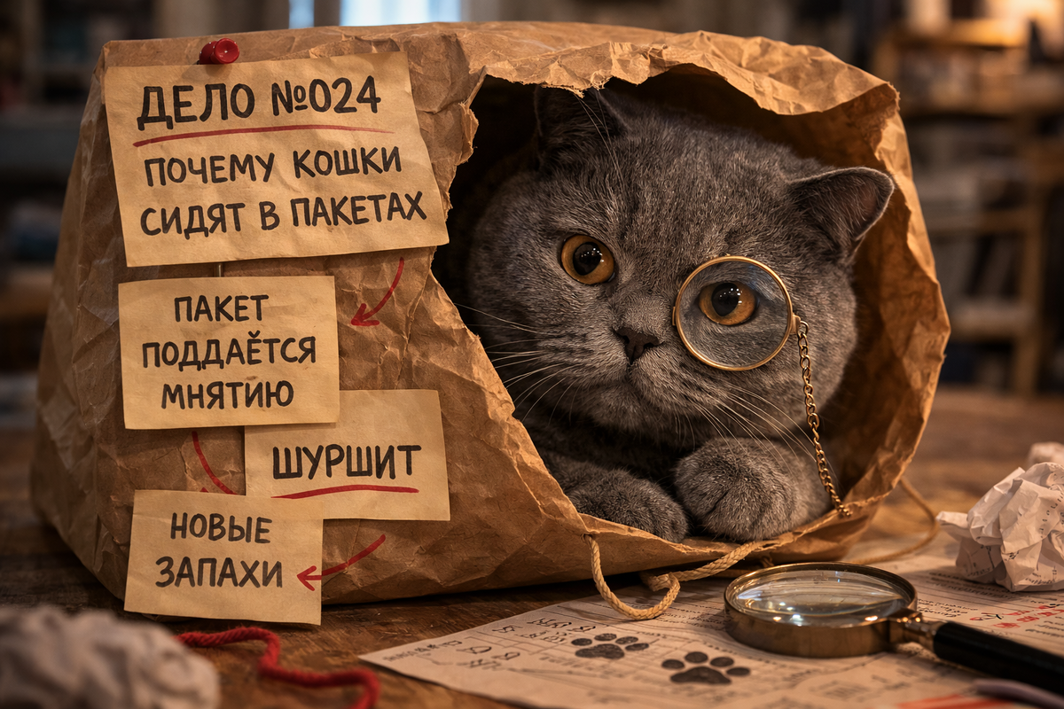 Для человека это просто пакет. Для кошки — целый информационный архив. Она туда залезает не только посидеть, но и буквально считать обстановку.