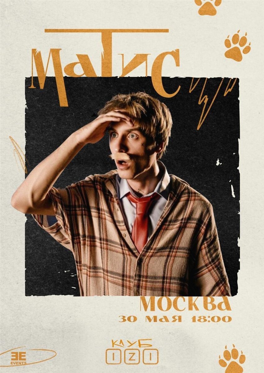 🎤 – Матис + live band 📍– «IZI», Москва, Басманный пер. д. 8 стр. 1 📍– «Ионотека», Санкт-Петербург, Лиговский просп. д. 50 к. 16 🗓 – Москва – 30 мая, Санкт-Петербург – 11 мая 💵 – от 699 руб. 🔗 – билеты (Москва – 12+, Санкт-Петербург – 14+) #концерты #билетынаконцерт #матис #москва #санктпетербург #izimsk #ионотека 👉 Список концертов: март • апрель • май @est_prohodka