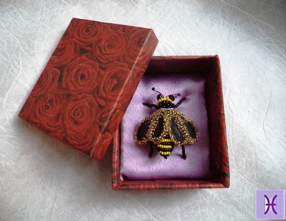 Всем подписчикам большой привет! Несколько лет тому назад делала брошь пчелу. Ту брошь давно продала. И тут, вдруг, мне захотелось сделать подобную себе любимой. Описания изготовления уже не сохранилось. А вот фото той первой моей пчелы остались. Вот она моя красавица. Решила сделать по памяти. Материалы для этой сегодняшней пчелы немного другие. И тем не менее она получилась. И в этой статье даю описание изготовления броши Пчела. Это не мастер класс, а просто описание изготовления. Итак, начнем. Тельце пчелы, той первой я вырезала из черного фетра. Сейчас у меня совсем черного фетра в наличии не оказалось. А покупать лист или может даже пачку фетра мне не хотелось. Зато я нашла у себя в “сундуке” лоскут ткани с лицевой стороны водоотталкивающий слой, а с другой, изнаночной стороны, короткий черный ворс. Вот из этой ткани я и выкроила две детали тельца для пчелы. Одна деталь точно по выкройке, а вторая деталь с небольшим, 2 мм, припуском. Обе детали сшила ворсистой стороной наружу. Ко