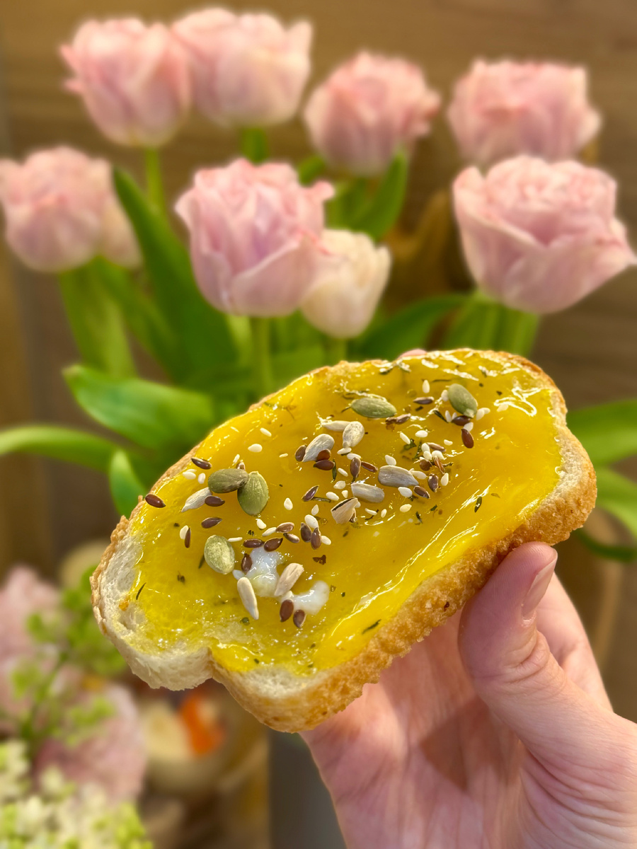 7. По желанию присыпьте разными семечками или дополните бутерброд мясом/ветчиной и овощами.
