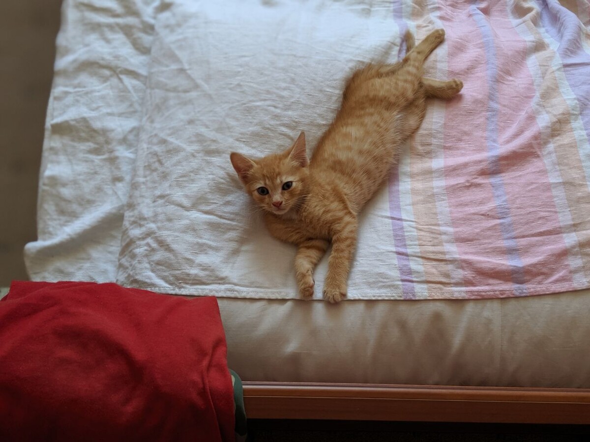 Было решено: котенок живет у нас до отъезда, а мы подыскиваем ему дом через все возможные соцсети. Если дом не находится, оставляем его во дворе на довольствии у родителей мужа.