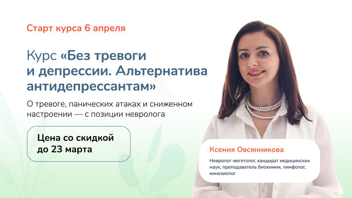 🔔 6 апреля стартует курс «Без тревоги и депрессии» Подробности и программа: