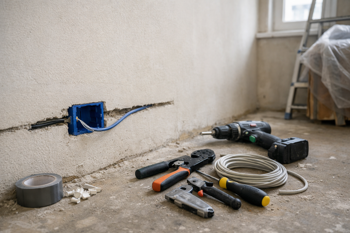 Содержание Во время ремонта многие думают только о розетках и освещении. Интернет обычно вспоминают уже после завершения всех работ. Кажется что роутер можно поставить где угодно и всё будет работать. Но позже некоторые начинают замечать неудобство. Провода появляются там где их совсем не планировали. Самое удобное время это этап ремонта Когда стены ещё открыты провести интернет кабель очень просто. Можно спокойно проложить его внутри стены и вывести аккуратную сетевую розетку. На этом этапе работа занимает совсем немного времени. Кабель можно провести сразу в несколько комнат. После завершения ремонта сделать это становится намного сложнее. Провода начинают появляться на виду Если интернет кабель не был заложен заранее его часто приходится тянуть по плинтусам или вдоль стен. Иногда он проходит через несколько комнат. Такие провода могут портить внешний вид интерьера. Их приходится прятать за мебелью или под коврами. Это выглядит не так аккуратно как скрытая проводка. С проводной сетью