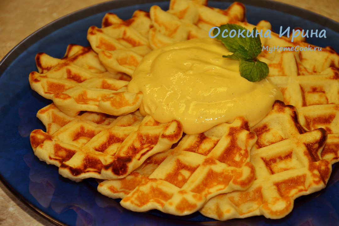 В чашу блендера вбила 4 яйца, добавила щепоть соли, 4 ст.л. коричневого сахара, щепоть соли, 2/3 стакана отварного риса, 1 ч.л. разрыхлителя, 1 ст.л. растительного масла и пробила до однородности, а затем напекла вафли в мультипекаре с панелями для венских вафель по 4 минуты каждую партию. Для соуса в чашу блендера сложила 1 крупную очень спелую хурму без кожицы и 150 г творожного сыр и пробила до однородности - получился в меру густой и в меру сладкий сливочный соус. Вафли разложила по тарелкам, добавила соус и подала. Бесподобная получилась вкуснятина! Восхитительное гурманское удовольствие) Приятного аппетита