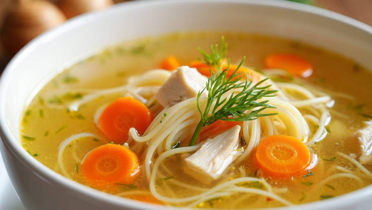 Когда на улице хочется тепла, а на душе — комфорта, нет ничего лучше тарелки золотистого куриного бульона. Но давайте честно: обычная вермишель часто размокает, превращая блюдо в кашу на следующий день. Сегодня я поделюсь с вами техникой «жидкой лапши», которая делает текстуру супа невероятно нежной, почти кремовой, но при этом оставляет бульон кристально чистым. Этот рецепт — спасение для тех, кто ценит время, но не готов идти на компромисс с качеством. Мы приготовим базу, а затем создадим «умную» лапшу из теста, которое не нужно раскатывать или резать. Буквально пара движений — и ваш суп превращается в шедевр высокой кухни. Готовы наполнить дом ароматом специй и свежей зелени? Для основы (бульона): Для «умной» лапши: Положите курицу в холодную воду. Доведите до кипения, снимите пену и варите на самом минимальном огне 30–40 минут с добавлением целой луковицы и лаврового листа. Совет шефа: Чтобы бульон был янтарным, запеките луковицу и морковь на сухой сковороде до подпалин перед тем,