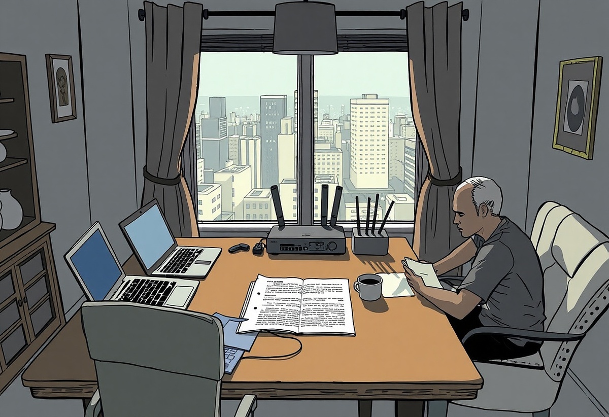 Квартира, где он скрывался, была съёмной, безликой и пахла стиральным порошком. На столе — три ноутбука, роутер с прошивкой без истории, кружка холодного кофе и открытый документ с заголовком:
