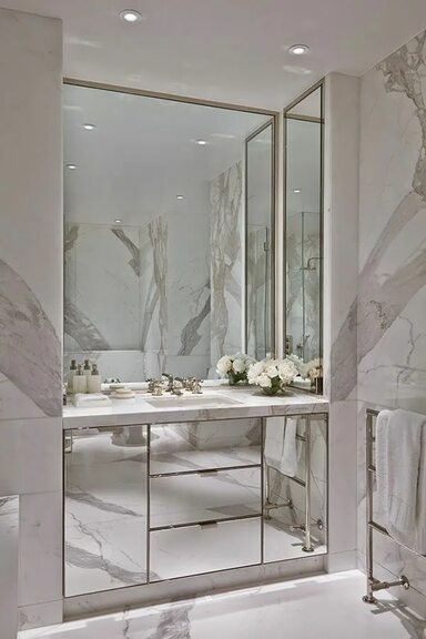 Один из примеров сложной работы дизайнера в ванной комнате — проект, где удалось совместить несколько сложных задач: нестандартную планировку, использование дорогих материалов и создание многоуровневой композиции. Задача: оформить Г-образную ванную комнату площадью 12 м² с высоким потолком (2,8 м) и окном. Заказчик хотел создать роскошный интерьер с элементами ар-деко, но при этом сохранить функциональность и эргономику. Сложности: Решение: Интерьер получился роскошным и функциональным. Мрамор и латунь создали эффектный контраст, а многоуровневое освещение позволило менять атмосферу в зависимости от времени суток. Подвесная мебель и инсталляция сэкономили пространство, а продуманное зонирование сделало комнату удобной для семьи из четырёх человек.