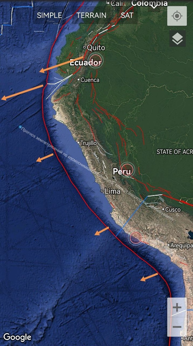 М8...) ===== In South America, an extended rift zone is traced from Ecuador through Peru to the northern part of Chile (the length of the CSTI reaches up to the M8...)