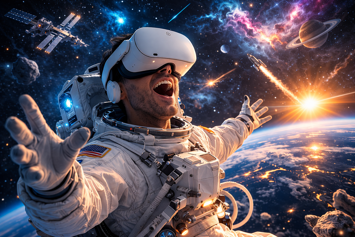 VR даёт другой тип впечатления. Это уже не формат “смотреть со стороны”, а формат участвовать. Не слушать о космосе, а хотя бы на час почувствовать себя внутри футуристичного сценария.