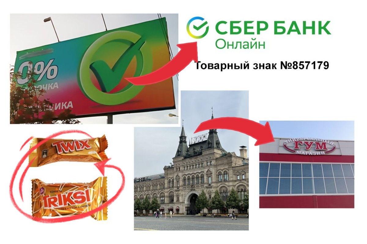 Некоторые предприниматели идут более изощренным путем. На иллюстрации ниже слева – товарный знак «TRIKSI», который зарегистрировал на себя один из российских производителей кондитерской продукции: