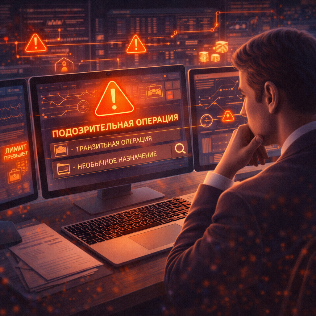 Они работают по правилам финансового мониторинга и требованиям законодательства. Система анализирует: Если операция соответствует нормальной бизнес-логике — она проходит автоматически. Если появляются отклонения — система формирует сигнал риска. После этого операцию может проверить сотрудник комплаенса. У банков есть внутренние пороги и сценарии, которые запускают проверку. Например: Такие события называют триггерами. Когда триггер сраба
