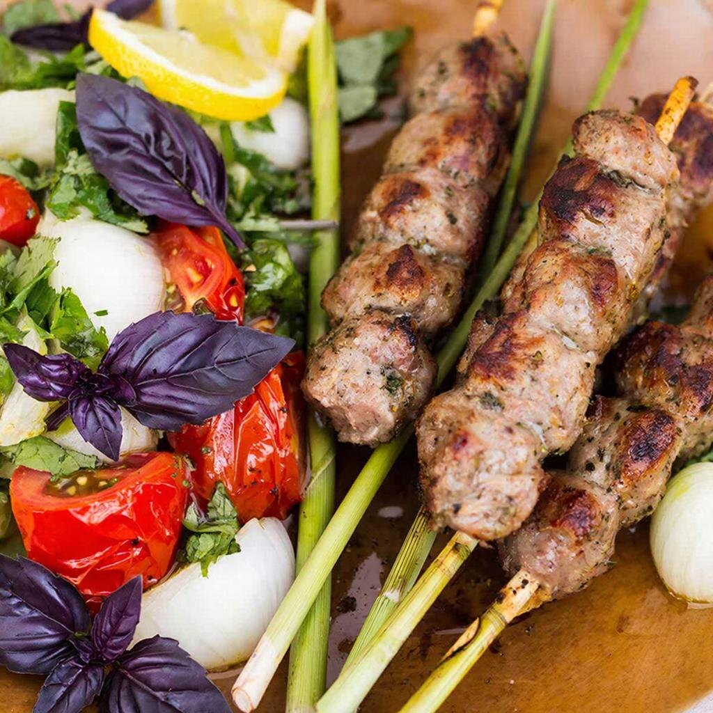 Калорийность: 256 ккал Для люля-кебаба: Для салата ачучук: 1. Подготовка фарша для люля-кебаба: 2. Формирование и жарка люля-кебаба: 3. Приготовление салата ачучук: 4. Подача: Лемонграсс, или лимонная трава, – это не просто экзотический ингредиент, а настоящий секрет изысканного вкуса нашего люля-кебаба. Его ценят за великолепный цитрусовый запах, который идеально гармонирует с мясом ягненка. Стебли лемонграсса слишком жесткие для употребления в пищу, поэтому их используют исключительно для ароматизации. При жарке кебаба на стеблях лемонграсса вместо традиционных шампуров блюдо приобретает особо утонченный и неповторимый аромат, который перенесет вас в атмосферу восточных базаров