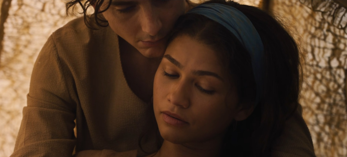 Однако сам Вильнев заявил, что в его кино адаптации этот шарф надевают в тот момент, когда фрименская женщина влюбляется. Чани сняла его в финале прошлого фильма перед тем, как в ярости уйти, но, судя по всему, их отношения к третьей части наладились. Судя по трейлеру, они совершенно точно помирились, поскольку крепко обнимаются в палатке и вовсю обсуждают создание совместной семьи.