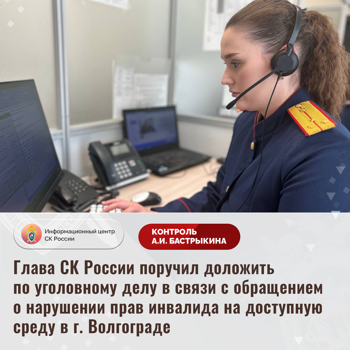 Глава СК России поручил доложить по уголовному делу в связи с обращением о нарушении прав инвалида на доступную среду в г. Волгограде На единую многоканальную телефонную линию Информационного центра СК России поступило обращение инвалида‑колясочника из города Волгограда по вопросу несогласия с ходом установления обстоятельств нарушения его прав на доступную среду. Ранее судом на уполномоченные органы возложена обязанность до апреля 2025 года оборудовать подъезд здания пандусом, однако решение длительное время не исполнялось. Необходимое устройство было установлено лишь после многочисленных жалоб в различные инстанции. Вместе с тем его использование невозможно: перила отсутствуют, пороги не занижены, что препятствует свободному перемещению инвалидной коляски. В связи с этим заявитель лишён возможности самостоятельно покинуть квартиру. В СУ СК России по Волгоградской области возбуждено уголовное дело. Председатель Следственного комитета Российской Федерации Александр Иванович Бастрыкин