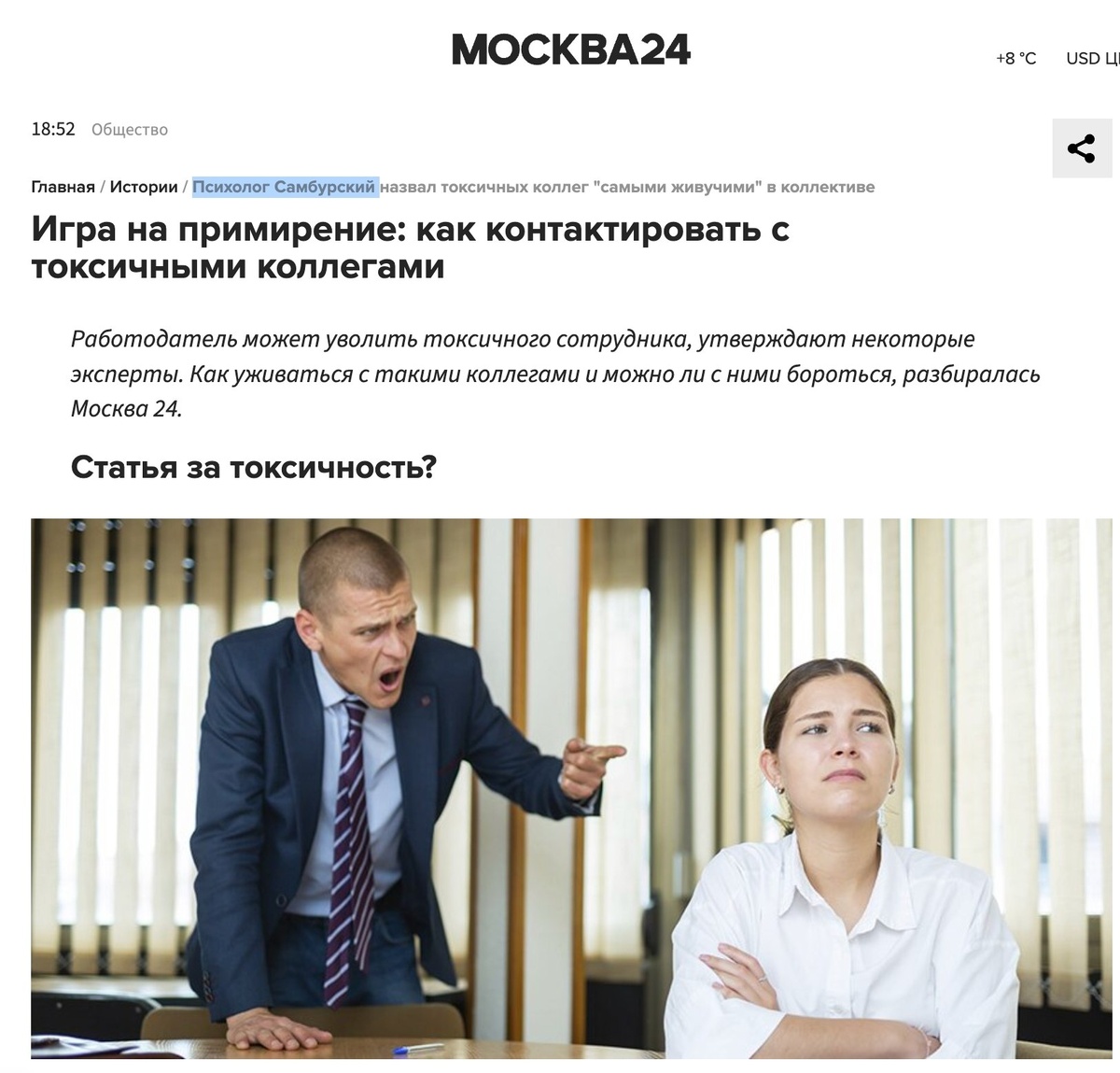доверие внутри команды, а сильные специалисты нередко принимают решение уйти. Именно поэтому современные организации все чаще рассматривают здоровую рабочую среду как стратегическую ценность Подробнее: https://www.m24.ru/articles/obshchestvo/16032026/882906 Психолог Самбурский: https://samburskiy.com/ Психолог Самбурский в МАХ: https://max.ru/samburskiy