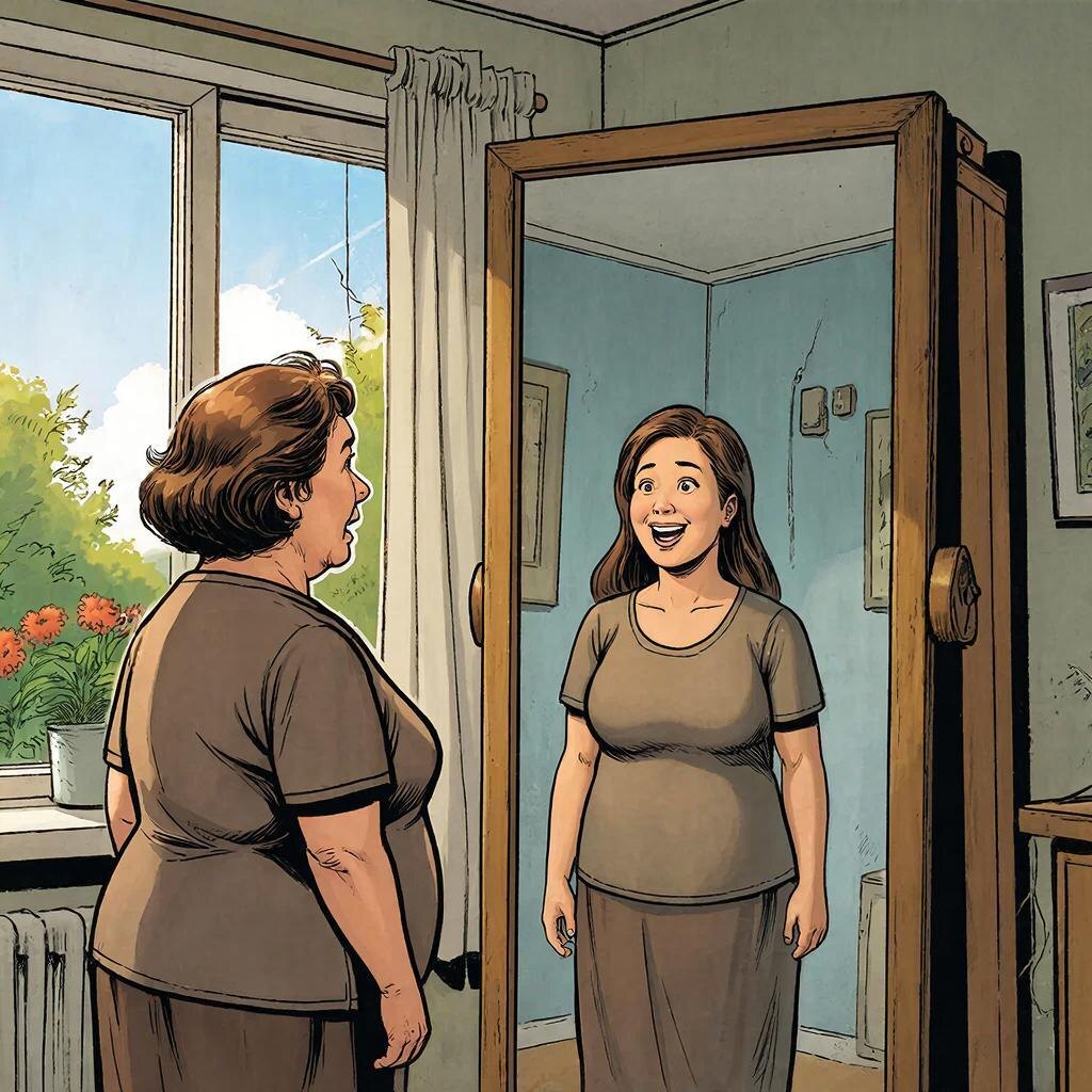 Аглая помчалась к зеркалу и застыла. Нет, отражение ей, безусловно, понравилось. Там была она, но гораздо худее и как будто моложе лет на 10 от паспортных 45-ти. Никаких отеков и мешков под глазами (и это в 8 утра). Вид свежий, кожа подтянутая. Зеркало тоже подменили?