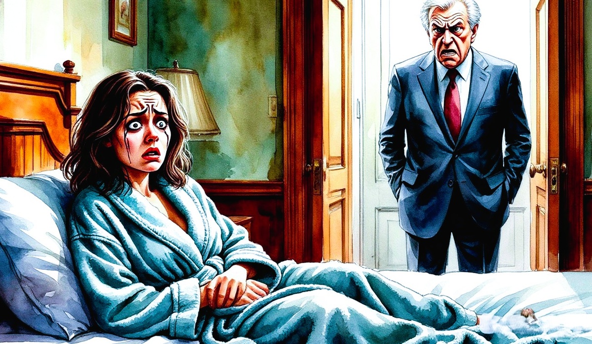 Света сидела на кровати, натянув одеяло до подбородка. Глаза испуганные, бегают, испугалась отца больше, чем мужа.