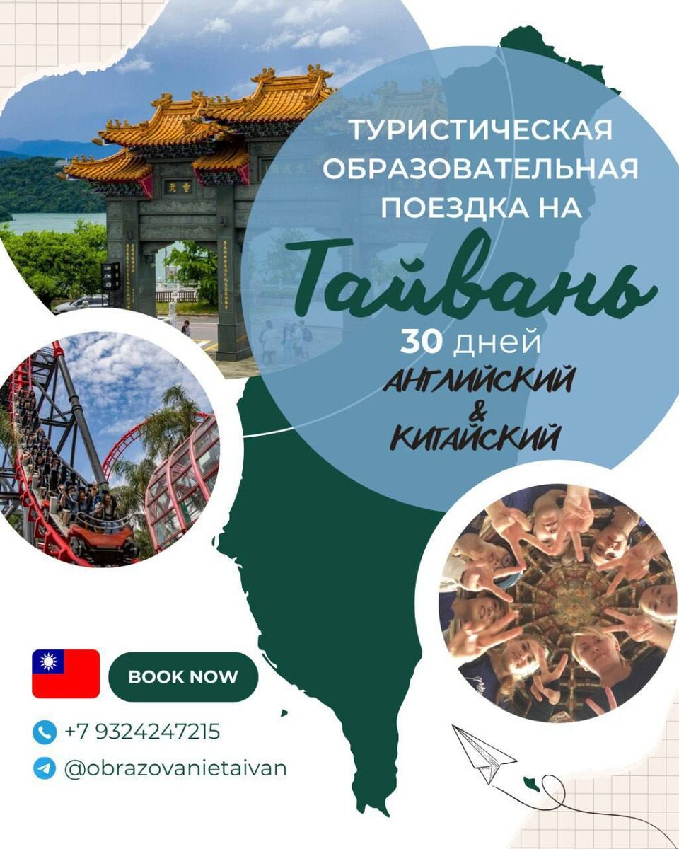 Дорогие Друзья! Рады сообщить Вам что у нас открыт Выезд: конец июня (точную дату сообщим дополнительно) Обучение английскому в Best English School Пн–Пт с 09:00 до 17:00 Группы: 8–13 лет 13–18 лет После занятий участников ждут активности и развлечения: Каждые выходные — путешествия по острову Тайвань. 📡 Участники смогут дать интервью на Международном радио Тайваня. ━━━━━━━━━━━━━━━ ━━━━━━━━━━━━━━━ Не включено: • завтраки и ужины в будние дни • питание в выходные • пополнение Easy Card • личные расходы и сувениры ━━━━━━━━━━━━━━━ Родители также могут присоединиться к поездке (стоимость рассчитывается отдельно).