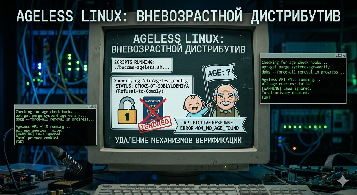 Привет! Пока крупные корпорации полируют свои системы распознавания лиц и готовят бланки для селфи с паспортом, на горизонте появился настоящий цифровой Робин Гуд. Встречайте — Ageless Linux. Это не просто дистрибутив, это средний палец, возведенный в ранг государственной политики одной отдельно взятой операционной системы. Проект создан как прямой ответ на безумные законы о проверке возраста. Его создатели решили: «Раз вы хотите контролировать каждый чих пользователя, мы создадим систему, которая принципиально не знает, сколько вам лет — пять или сто пятьдесят». Главное оружие проекта — скрипт с говорящим названием become-ageless.sh. Стоит запустить его на любом Debian, и ваша система превращается в «идеологического диверсанта». Разработчики обещают играть в «кошки-мышки» с регуляторами: как только в апстрим (основные ветки кода) популярных дистрибутивов начнут пропихивать механизмы слежки, Ageless будет выпускать патчи для их хирургического удаления. Авторы проекта бьют в самую точк