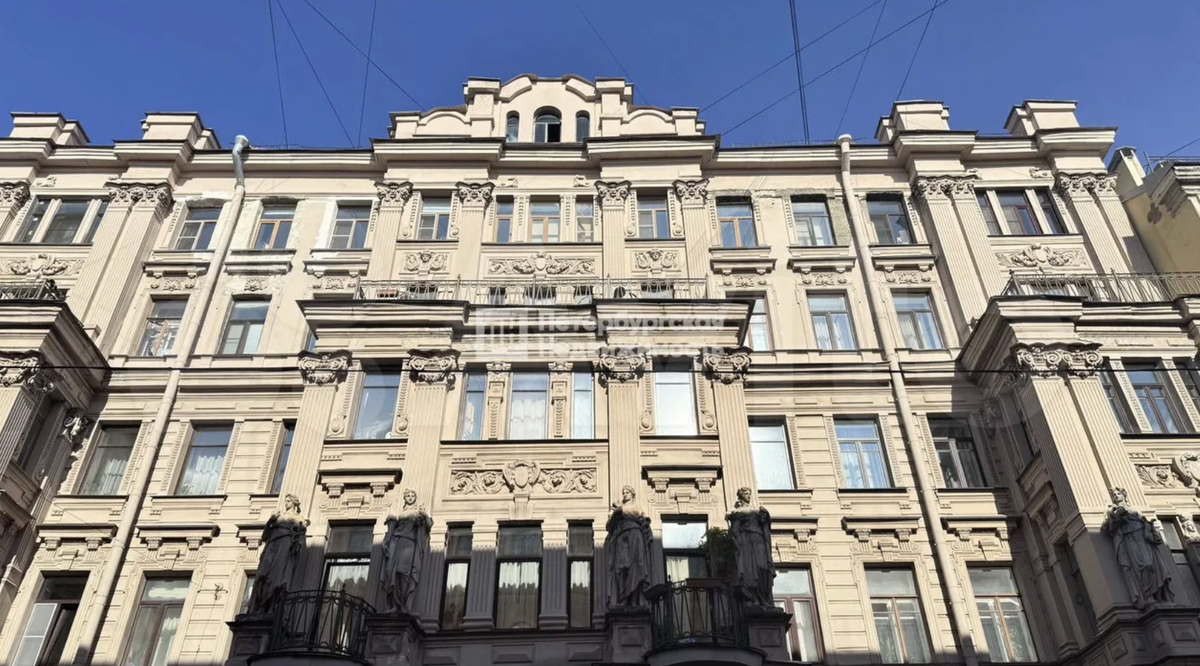 В квартире две довольно большие комнаты — около 20 и 27 квадратных метров. Обе выглядят достаточно просторными. Есть балкон, что для старого фонда всегда является приятным бонусом. Окна выходят в типичный петербургский двор.