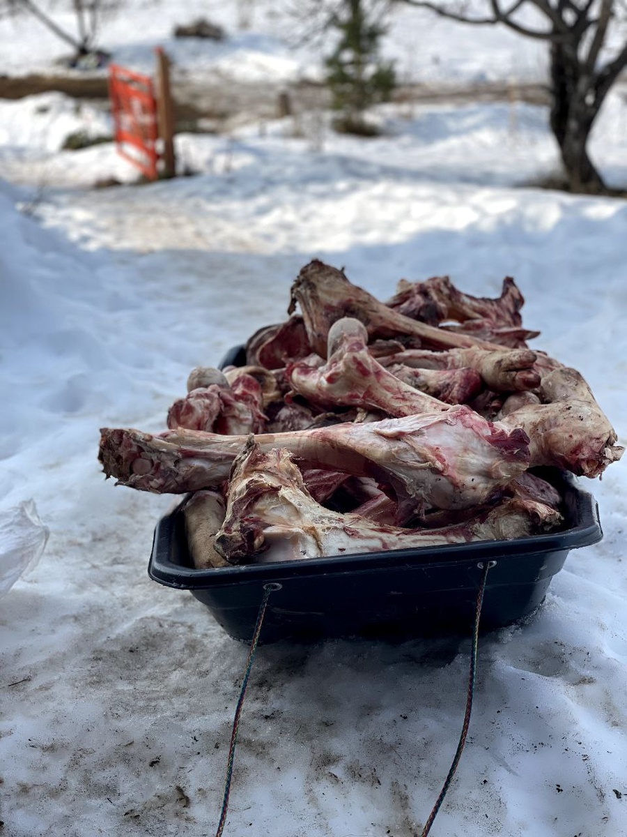 На машине до дома не доехать, а перемещать мешки еды для питомцев, ёлки и прочие стройматериалы для обустройства вольер - необходимо. "Хорошо, что мы - банда!" - при деле и Нанук, и директор дружественной богадельни. 🤣