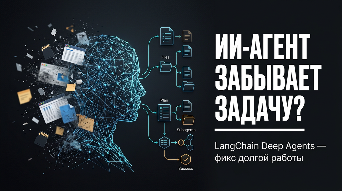 Большинство ИИ-агентов отлично живут, пока просишь их сделать что-то короткое. Вызвали пару инструментов, ответили, разошлись. Но стоит задаче стать взрослой — на несколько шагов, с промежуточными файлами, черновиками и «а давай ещё вот это» — агент начинает плыть. Как человек, который открыл 27 вкладок и забыл зачем вообще включил ноутбук. LangChain — один из самых популярных инструментов для сборки ИИ-агентов — выпустил Deep Agents. Это не новая модель и не революция. Это набор нормальных настроек и инструментов для агентов, которым нужно жить дольше одного запроса. Без нормальной структуры агент работает как человек без записной книжки: что видит прямо сейчас — то и делает. Задача длинная — начинается сериал без сценария. К пятому шагу он уже не помнит что решили на первом. Плюс есть техническое ограничение: у любой языковой модели есть предел «рабочей памяти» — объём информации который она держит в голове за один разговор. Стоит этот предел переполнить, и модель начинает забывать н