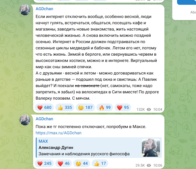 На фоне грандиозных перемен в цифровой оснащенности еще недавно одной из самых передовых в этом смысле держав, а напомню, Россия совсем недавно в этом плане числилась в лидерах и вот буквально только-только МСЭ опубликовал Индекс развития ИКТ за 2025 год и в нем Россия набрала 92,3 балла из 100, продолжив рост по сравнению с предыдущими годами, (в топе рейтинга - нефтяные монархии Аравии и Европа) я, маленько устав от причитаний вдруг прозревшей неладное патриотической части общественности от Дм. Ольшанского до героических военкоров, не скупящихся филиппики в адрес как "обрезающих", так и "самого надежного мессенджера" в котором уже появились боты, предлагающие безобразия всякие, обратила свой взор на тех, кому это точно должно было понравится - на философов наших!