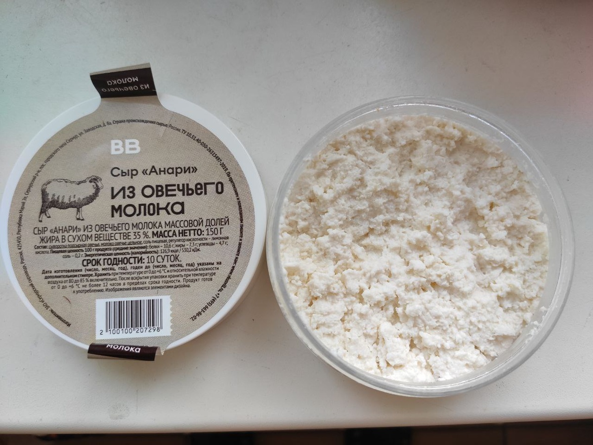 - СЫР Впервые купил сыр Анари довольно давно в супермаркете "Да!". Потом он мне долго не попадался, но наконец обнаружил его во Вкусвилле. Правда, бывает он там не всегда. Вернее продают его только в избранных магазинах сети. Уж не знаю, по какому принципу выбранных. Сыр превосходный! Стоит не лишком дорого для стопроцентного овечьего молока. 141 рубль за 150 г сыра в приятной пластиковой баночке. Тонкий и ненавязчивый аромат овечки. Идеально сбалансированная текстура молодого сыра. Едва заметная кислинка. Мой опыт показывает, что козьи сыры - это идеальная пара для черного кофе. Овечьи сыры обычно слегка противоречат этому напитку. Анари, пожалуй, исключение из этого правила. Он совсем неплохо аккомпанирует черному ароматному кофе с лёгкой горчинкой. Недостаток (или достоинство?) этого сыра - короткий срок хранения, всего 10 дней. Однако такую баночку даже один человек может с удовольствием с'есть за пару- тройку подходов.