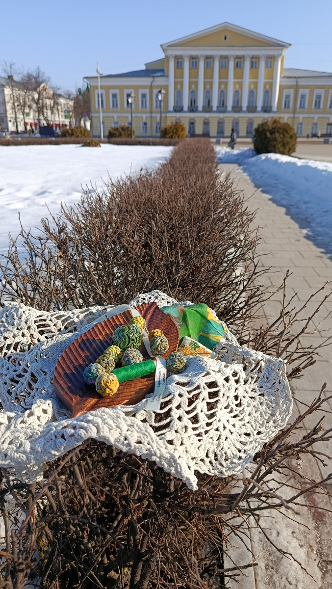 И центральным элементом стала керамическая огромная бусина. Это костромская Петровская керамика, известная авторская марка.