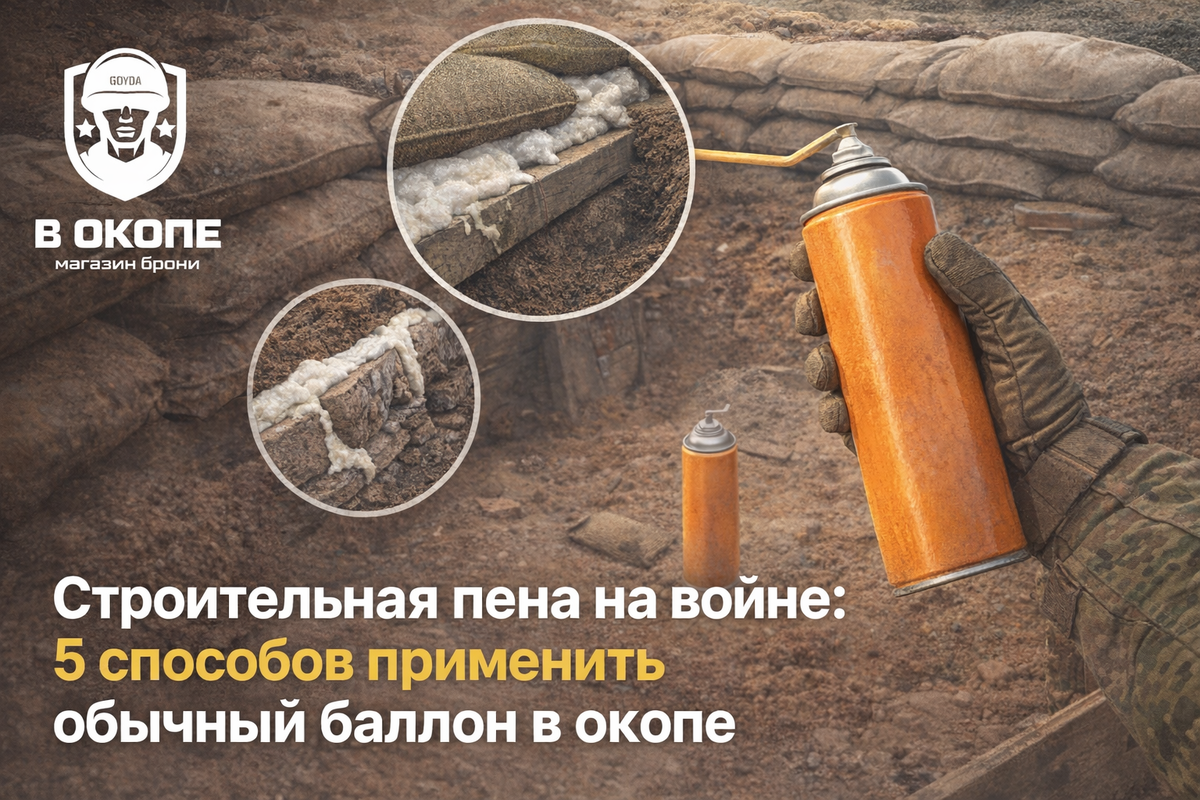 Если вы заглянете в рюкзак современного оператора БПЛА или связиста, среди дорогих раций, мотков паракорда и синей изоленты вы всё чаще будете находить странный предмет — баллон обычной строительной пены (типа «Макрофлекс»). На первый взгляд, гражданской химии не место в суровых тактических условиях. Но современная окопная война — это война инженеров. Бойцы быстро поняли, что вспененный полиуретан обладает уникальными физическими свойствами: он невероятно легкий, липкий, расширяется в объеме и застывает за полчаса. Давайте разберем 5 неочевидных, но 100% рабочих способов применения монтажной пены, которые сегодня спасают жизни и технику на передовой. Самая страшная угроза зимой — это не мороз, а дроны с тепловизорами. Когда вы топите печь в блиндаже, горячий воздух неизбежно ищет выход через щели между бревнами наката или стыки входного полога. Для тепловизора это выглядит как яркое белое пятно на холодной земле.