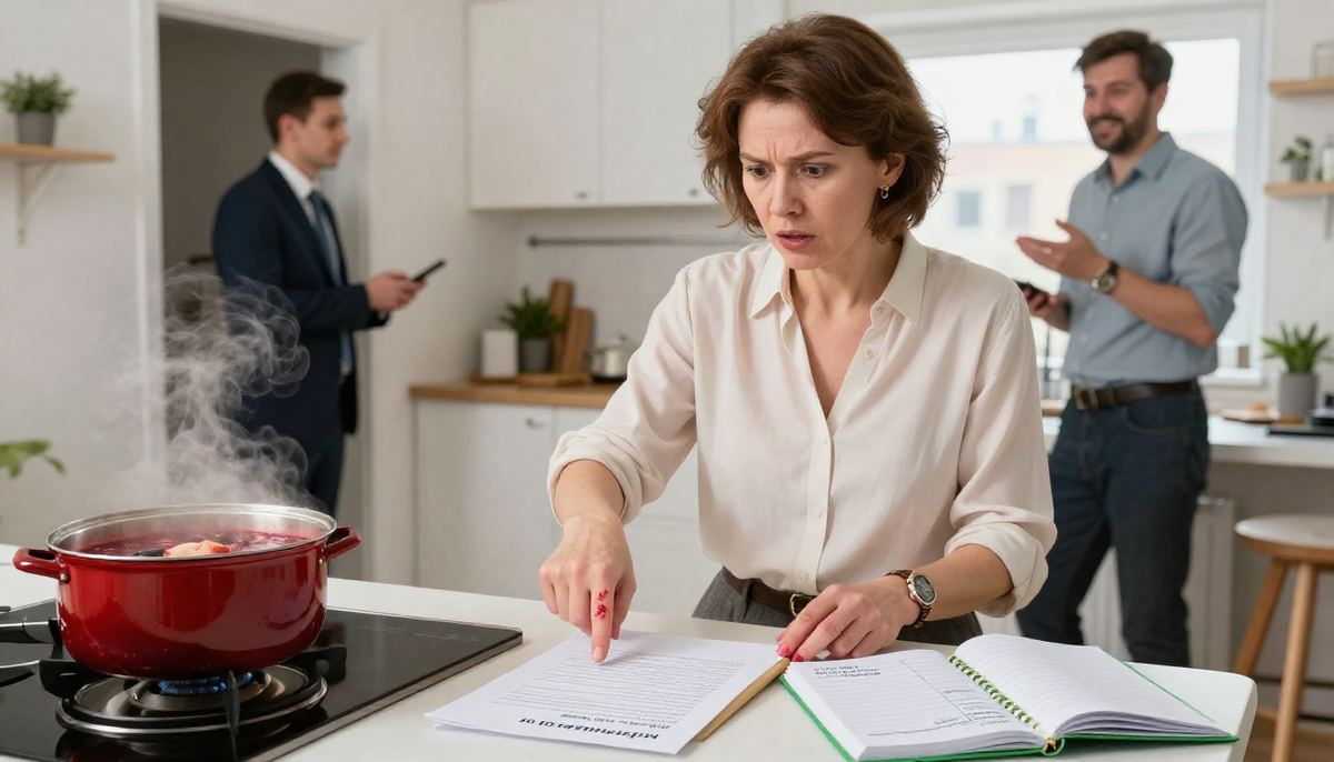 Я стояла у плиты. В кастрюле закипал борщ – свёкла, морковь, капуста. Обычный вечер четверга. Только вот муж пришёл не один. За его спиной топтался парень в костюме – оказалось, помощник адвоката.