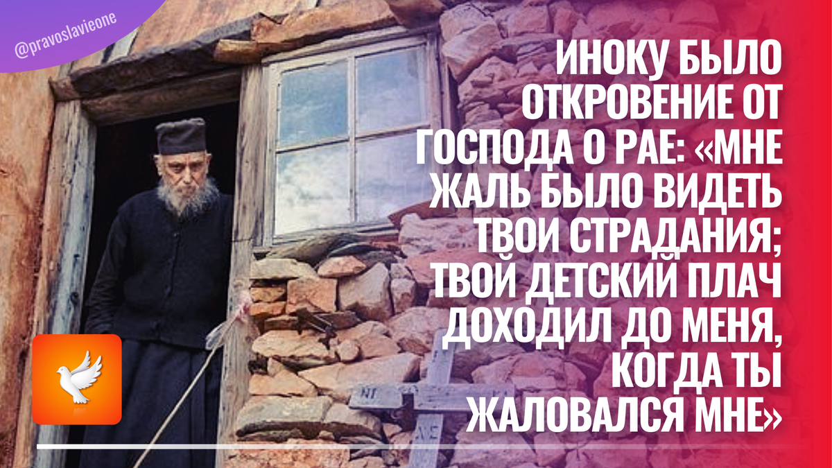 «Это твое, — продолжал он, — но еще не совсем готово, потерпи немного. Когда придет время твоего вечного покоя, Я возьму тебя к Себе; а пока побудь здесь, посмотри на красоту твоего места и терпи до срока: претерпевший до конца спасется!»