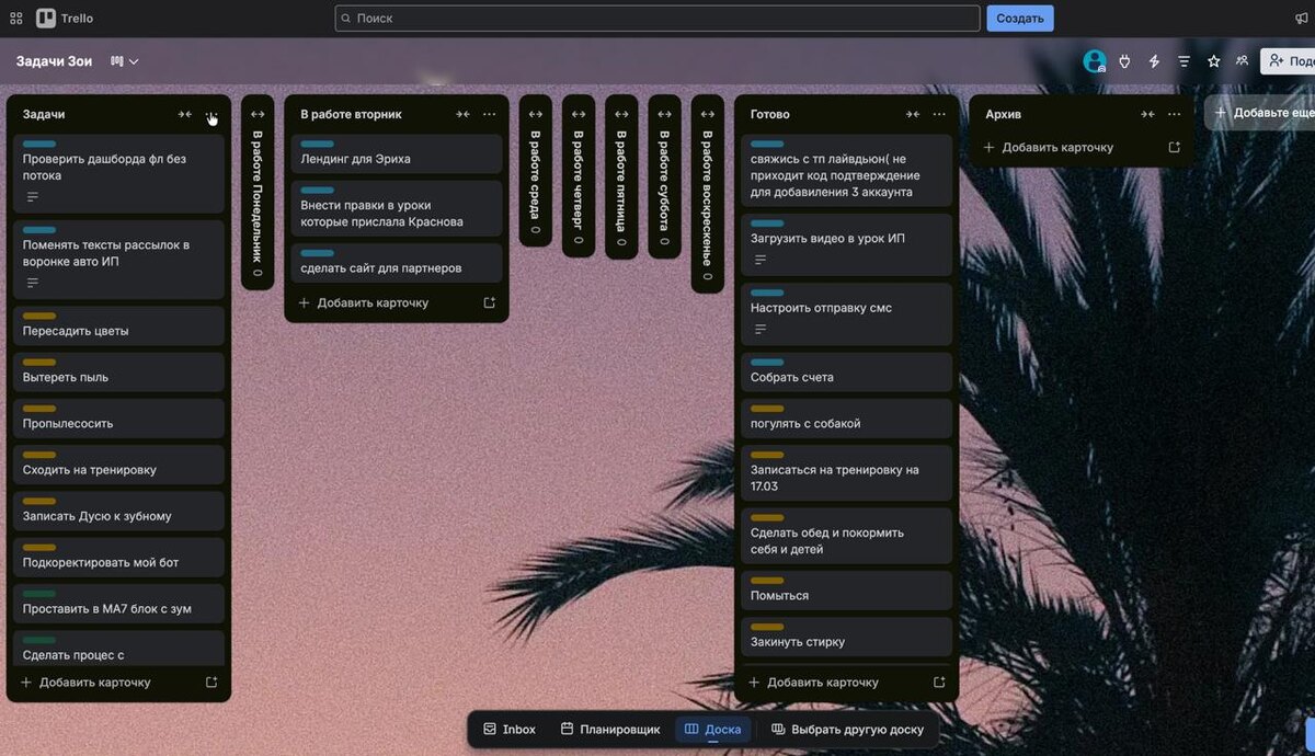 🔥 — функциональная — здоровая спина Я их запомню надолго. Болит всё… даже то, о существовании чего я раньше не подозревала 😅 Шаги: 8 717 👣 Сегодня понедельник, а значит очень загруженный день. Но я всё-таки разгребла кучку задач, которые давно висели. Ещё сегодня экспериментировала со своим тайм-менеджментом. Так как у меня сейчас 3 проекта, нужно как-то держать в голове все задачи. Бот у меня пока ещё сыроват, поэтому завела себе доску в Trello. И знаете… мне понравилось. Правда, не уверена, надолго ли меня хватит 😄 Ну и, конечно, сегодня много работала со своим другом ChatGPT 🤖 Очень продуктивно: поправили два лендинга, поставили скрипт, чтобы скрывались и открывались блоки в Tilda, и ещё куча мелких рабочих задач. Что я устала — думаю, можно даже не говорить. Зато на улице уже который день солнце и тепло ☀️ Даже отсутствие интернета на улице не портит настроение. И чтобы вы не забывали: до моего отпуска — 12 дней 🚗✨ Я уже очень жду. 🧠 Урок дня: когда задач много, сп