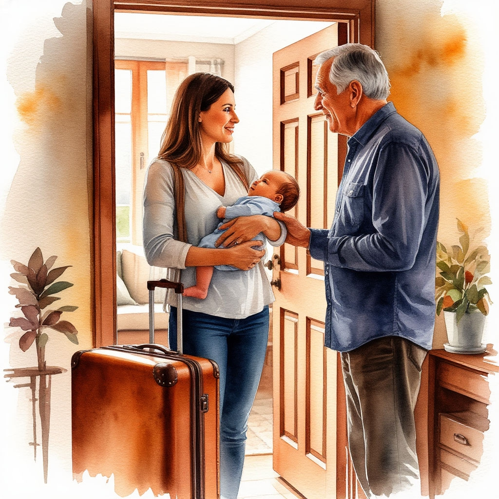 Он посмотрел на неё с чемоданом, с ребёнком на руках, с красными глазами. И вместо того, чтобы сказать «я же говорил», он просто улыбнулся и шагнул вперёд, освобождая проход.
