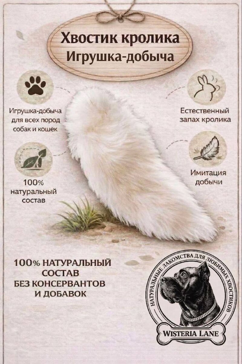- Сушеные натуральные экологически чистые хвостики кролика. - Стимулирует естественные охотничьи инстинкты, благодаря натуральному аромату. - Подходит для активного времяпрепровождения в компании хозяина. - Универсальное решение для кошек и собак, способствует развитию моторики и внимательности - НЕ ЯВЛЯЕТСЯ ЛАКОМСТВОМ ДЛЯ СОБАК! - ЛЮБЫЕ ТЕРМООБРАБОТАННЫЕ КОСТИ ОПАСНЫ ДЛЯ ЗДОРОВЬЯ СОБАКИ