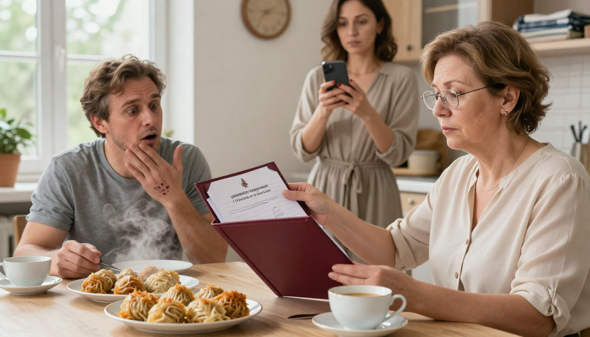Виктор молчал. Денис смотрел на папку, на меня, на отца. Никто не спросил, что внутри. Но Виктор перестал есть. Встал из-за стола. Ушёл в комнату.