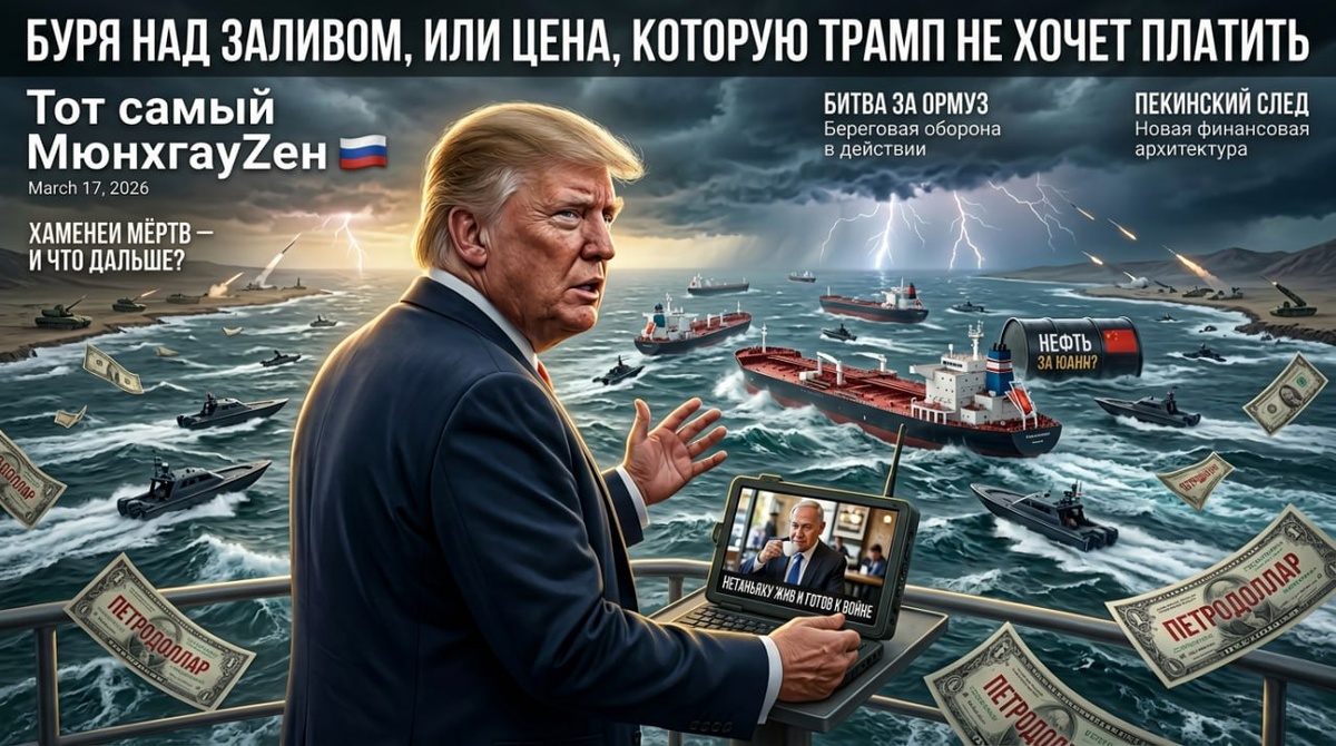🚨 Колонка МюнхгауZена: Буря над Заливом, или Цена, которую Трамп не хочет платить И вот теперь Трамп, своим решением выйти из войны (по всем ресурсным параметрам — вопрос ближайших дней), ставит крест на этой системе. Он не просто отступает перед Ираном. Он выбрасывает на помойку механизм, который кормил «священных коров» американской политики полвека. Эти люди, для которых статус гегемона — не просто прихоть, а профессиональный инструмент заработка, передаваемый по наследству, не простят ему этого никогда. Они смирились бы с потерей Украины, ибо там крутились «шальные» деньги, пришедшие с политической конъюнктурой и способные уйти вместе с ней. Но лишиться Залива — значит лишиться будущего для себя и своих детей. И они уже начали собирать свою коалицию. 🔻 Часть третья. Коалиция «обиженных львов» и израильский тормоз Процесс пошёл. И чем отчаяннее Трамп будет метаться, пытаясь сохранить лицо, тем быстрее будет закручиваться гайка вокруг его кресла. Сигнал к открытой охоте прозвучи